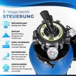 [Comprend un affichage de la pression] Le manomètre intégré vous permet de vérifier à tout moment la pression dans le système de filtration de la piscine. De plus, vous pouvez vérifier rapidement le degré de contamination dans le filtre de la piscine. Le système de filtration à sable AREBOS impressionne par des coûts de maintenance inférieurs et de meilleures performances qu’une solution à cartouches. De plus, il est livré avec une aide pratique qui facilite le remplissage.