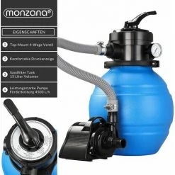 [Très efficace] Le système de filtration à sable de 400 W d’AREBOS avec un débit jusqu’à 10 200 l/h et une hauteur de refoulement jusqu’à 8,5 m gardera votre piscine propre. Ce système de filtration convient à pratiquement toutes les piscines disponibles dans le commerce jusqu’à une taille maximale d’environ 40 m³.
