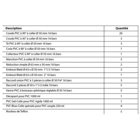 Kit complet de raccordement PVC Ø50 mm PN-16 pour piscine. – – – –