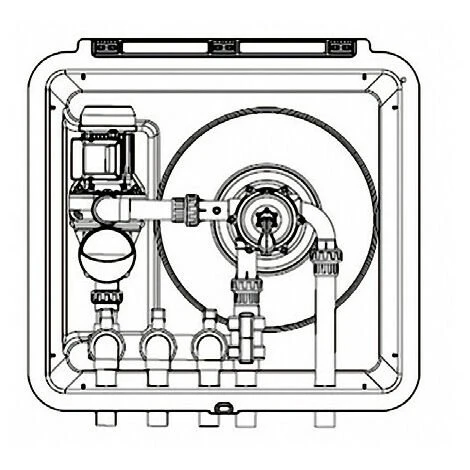 Local enterré injecté en polymère renforcé avec de la fibre de verre. Ces locaux sont entièrement équipé pour des piscines allant jusqu’à 60 m2. Equipé d’un filtre laminé Aster Ø 550 mm et d’une pompe de filtration Sena de 1 CV. Collecteur équipé de 3 vannes à boisseaux d’isolement, sans coffret électrique.