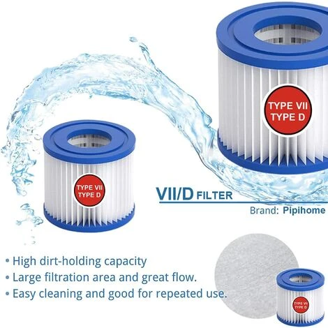 Installation facileIl suffit d’insérer la cartouche filtrante de remplacement de type D/VII dans la pompe et de fermer le dessus.Il est portable et facile à utiliser. Doit être remplacé toutes les deux à trois semaines.Aide à maintenir une eau de piscine propre, claire et plus saine.