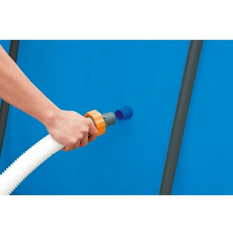 Prémonté pour plus de commodité, ce produit est compatible avec la plupart des piscines hors sol de 1 100 à 66 600 L, grâce à son adaptateur pour valves de piscine. Le sable n’est pas fourni avec ce filtre. La dimension requise du sable est : 0,45 – 0,85 mm, environ 36 kg. Le filtre fonctionne également à merveille avec les balles filtrantes Polysphere™ de Bestway®.