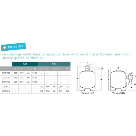 N’hésitez plus et commandez vite le filtre à sable type TOP Ø 615 mm 14m³/h