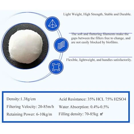 【Économie d’énergie et durabilité】 Le diamètre de chaque boule : 50-60 mm. Les perles filtrantes peuvent être nettoyées et réutilisées à plusieurs reprises, ce qui permet d’économiser efficacement les coûts de nettoyage et d’énergie.