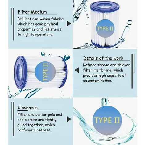 Filtre de piscine type 2 : convient pour les purificateurs à cartouche de type II pour Bestway 58094,58148,58117, SPA, remplacement pour filtre de nettoyage de piscine.