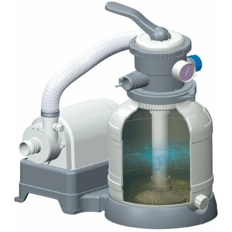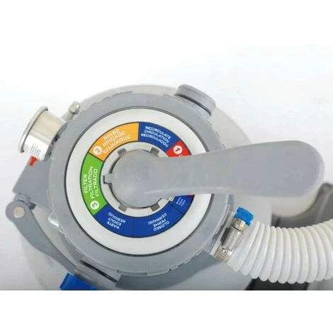 Informations produit: Filtre à sable Marque: Summer Waves Coloris: gris Débit: 4,2 m3/h Diamètre des raccords: 38mm Contenance: 12 kg de sable Sable: finesse #20 avec des grains compris entre 0.45 & 0.85mm et un coefficient d’uniformité inférieur à 1.75 6 modes de fonctionnement filtre, lavage à contre-courant, rinçage, recirculation, vidange et fermeture Manomètre pour vérifier l’état d’encrassement Moteur puissant Réservoir très résistant Tension de fonctionnement: 230 volts Entretien: Remplacer le sable tous les 5 ans. Adaptable à toutes les piscines dont le diamètre d’entrée et sortie de pompe est de 3.81 cm ATTENTION: Ne jamais mettre la pompe en fonction sans eau